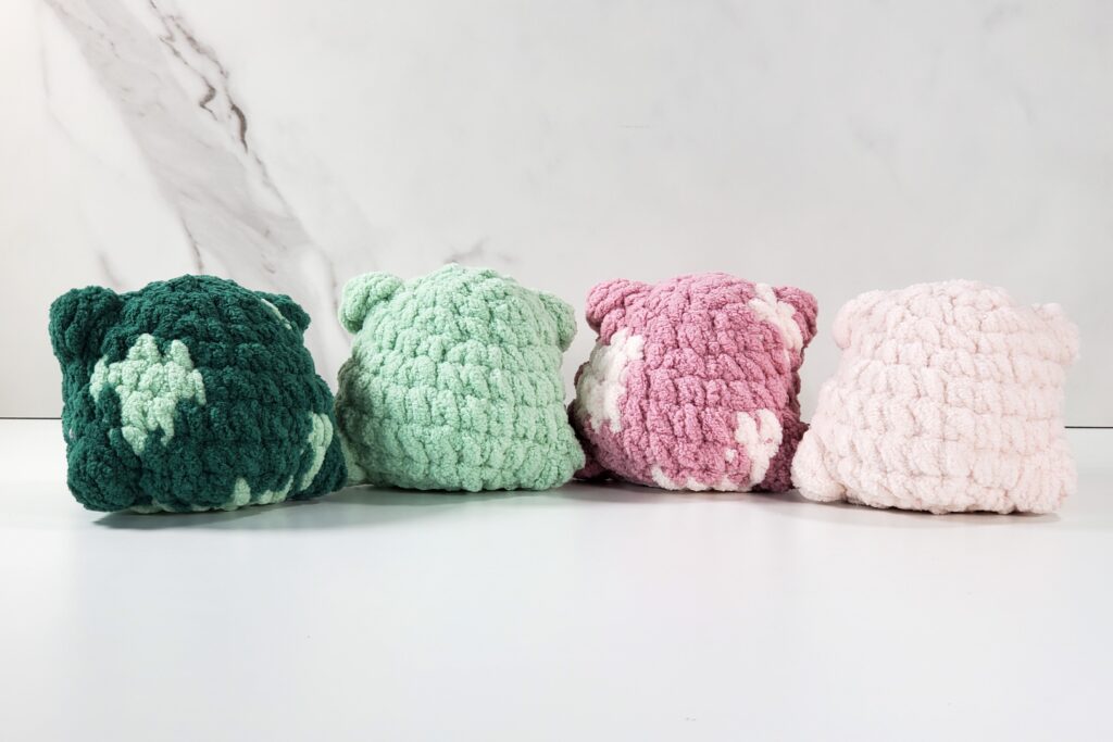 Introducing our adorable frog toad, meticulously crafted with Bernat Blanket Super Bulky yarn (#6) for a plush, squishable feel that’s perfect for relieving stress. Its compact, round design makes it an ideal companion for those seeking a bit of comfort. Available in four distinct colorsātwo featuring spots and two in solid huesāthere’s a toad to match every personality. The 12mm safety eyes provide a delightful touch, while the mouth is intricately detailed using Beginner Yarn (#4) in Black. Whether you’re looking for a cute collectible or a soothing stress ball, this frog toad is sure to bring a smile to your face