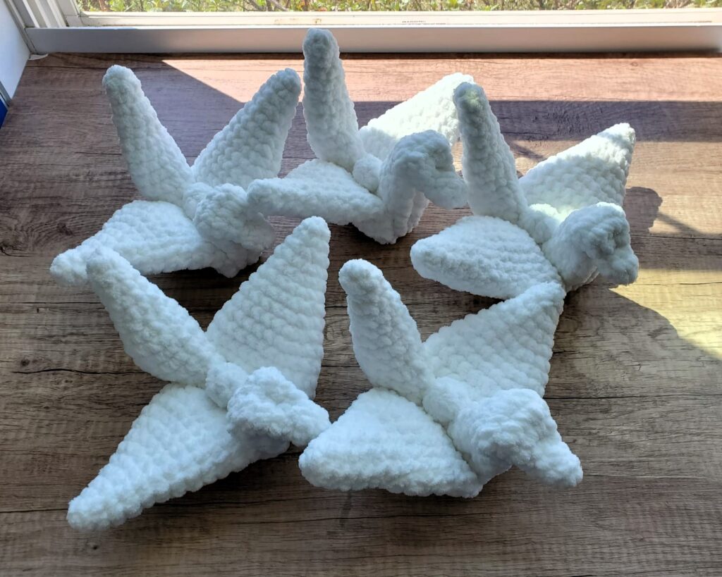 If youād like to learn more, check out my previous blog post where my crochet cranes were featured in a collectSPACE article! And if youād love to add a white crochet crane to your own collection, you can find them on my Etsy shop here (solid color) and here (multicolor)! š