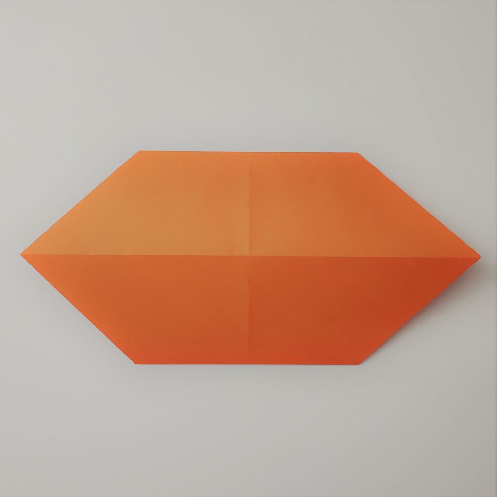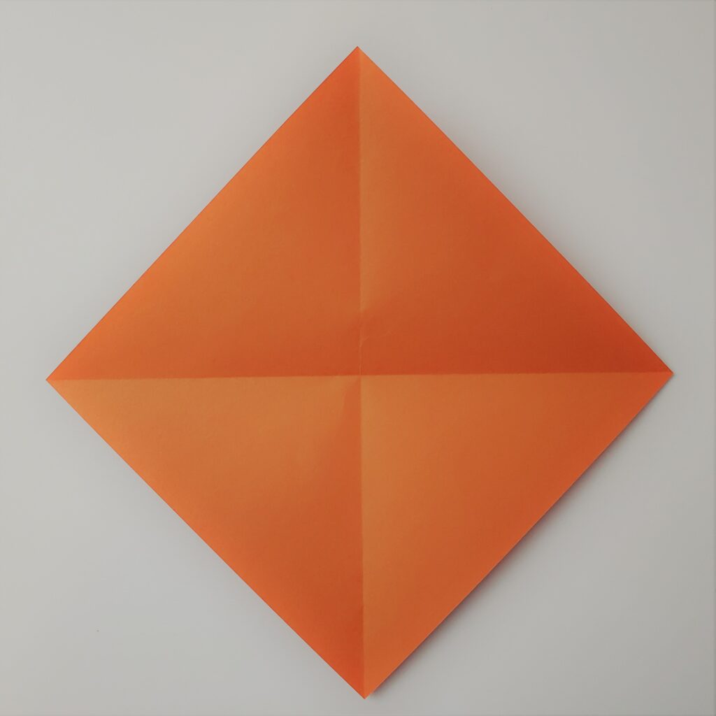Fold the bottom left corner to the top right corner and unfold. Then fold the bottom right corner up towards the top left and unfold. This should form an X crease.