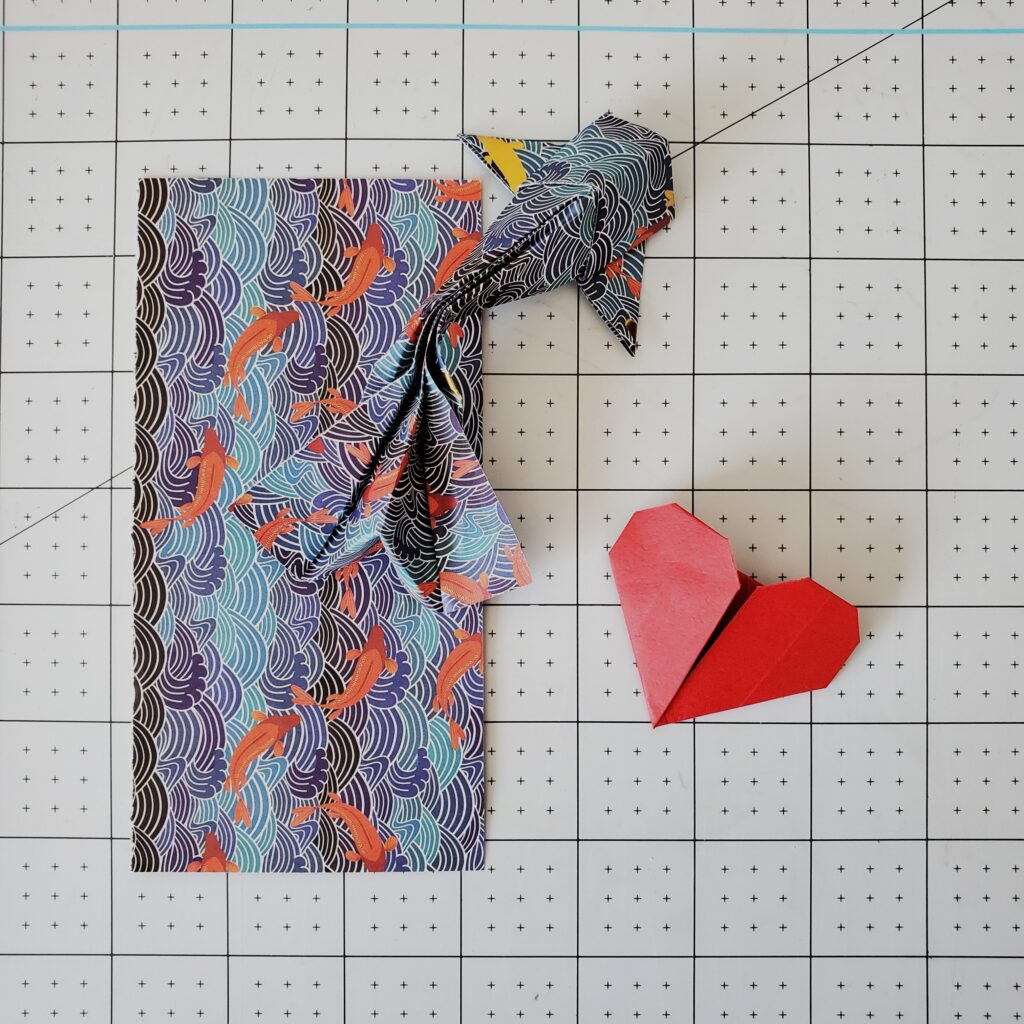 The first step is to create your origami koi fish and heart. Follow these simple and calming tutorials to get started: here and here!