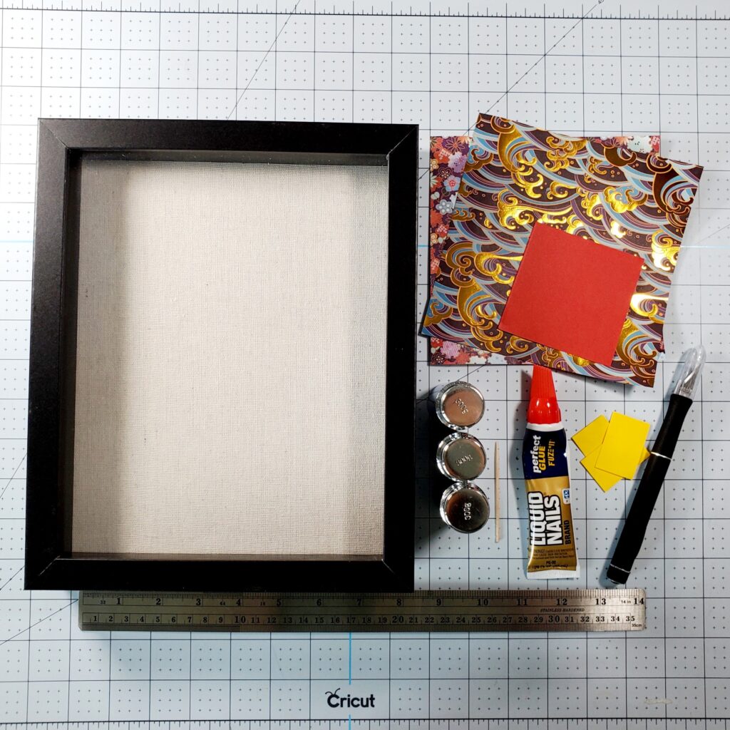 Once the glue is dry, reattach the backboard to the shadowbox frame and secure it.